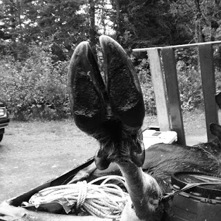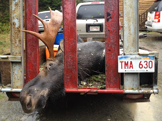 The next day was a repeat only without the salmon. This time, a large truck of filthy men carried in a hunted moose. New Brunswick has a three day hunting season for moose and there were hunters everywhere throughout the province.