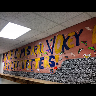 The following day, I had a date with some of the kids at a local elementary school. A banner hung from the entrance wall and my stomach did a flip as I read my name on the large display.